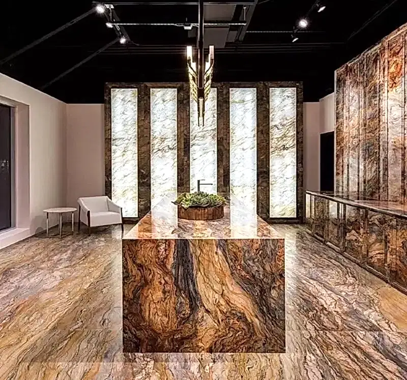 Azerbaycan'da Küvet Restorasyonu için traverten taşı diğer taşlarla kombin edilebilir.